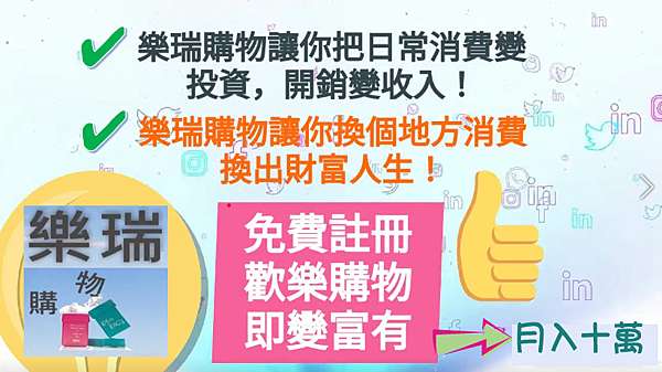 當初樂瑞購物在和政府申請執照的時候,政府官員就說,那如果樂瑞購物的會員,有人很認真分享樂瑞購物,你們這種的現金回饋機制,那不就會創造很多台灣富翁!樂瑞創辦人就笑笑,這就是樂瑞創辦的用意呀~